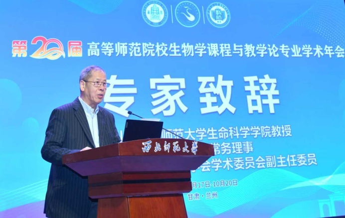 刘恩山在致辞中回顾了年会的发展历程,希望能以本次年会为契机,凝聚生物学课程与教学论领域的中坚力量、激励新生代继往开来,共同推进生物学课程与教学论的发展。