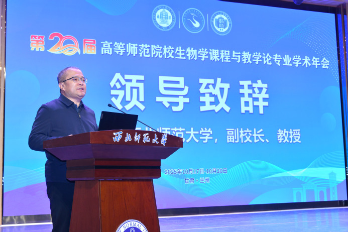 开幕式上,张明军回顾了西北师大的办学传统,重点介绍了学校在生物学学科建设、科学研究等方面取得的成果。他表示,本次年会为全国生物学教育工作者提供了交流平台,期待通过与会专家的深入研讨和思想碰撞,进一步拓展学术视野,激发教育创新思维,为生物学教育改革与发展注入新动能。