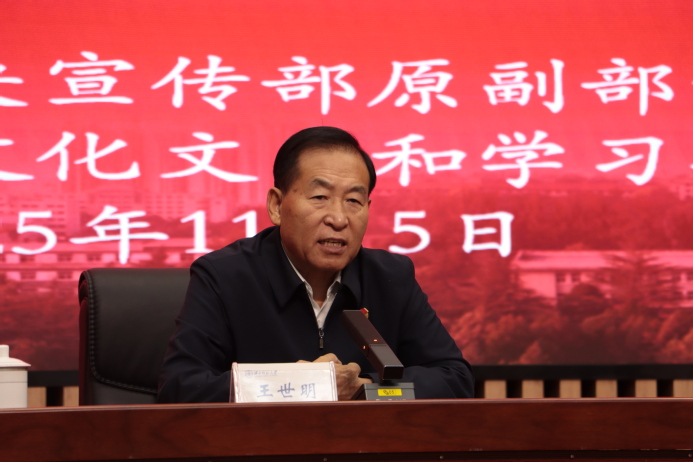 11月5日,西北师大举办党委理论学习中心组(扩大)学习会,专题学习党的二十届四中全会精神。党委书记贾宁主持报告会。中宣部原副部长王世明应邀作专题辅导报告。校领导焦爱胜、张明军、王文昇、马世年、阎岩,学术副校长荀渊出席报告会。学校党委委员、纪委委员,各单位、各学院党政主要负责人,机关部门副处级以上干部以及全体辅导员参加学习。
