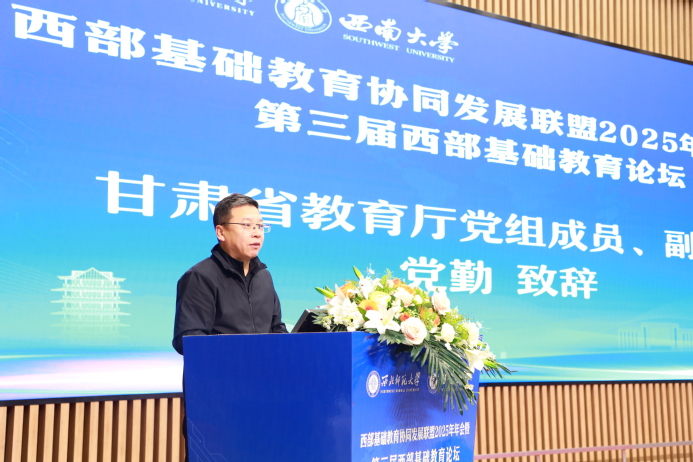 党勤在致辞中表示,近年来,甘肃省始终将基础教育置于优先发展战略地位,在省委省政府的坚强领导下,全省教育战线攻坚克难、锐意进取,基础教育改革发展取得重大阶段性成效。希望与会专家学者通过本次论坛,加强交流和合作,共同为西部地区教育事业发展和教育强国建设贡献力量。