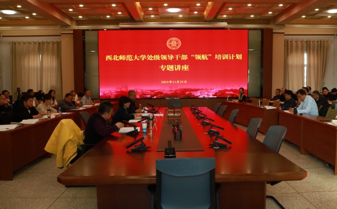 11月25日下午,西北师大举办第一期处级领导干部“领航”培训计划第七场专题报告会。副校长张明军、张金尧应邀作专题讲座,党委常委、党委组织部部长周琳辉主持报告会。学校处级领导干部“领航”培训计划全体学员,教务处、研究生院、国际合作交流处全体干部参加学习。