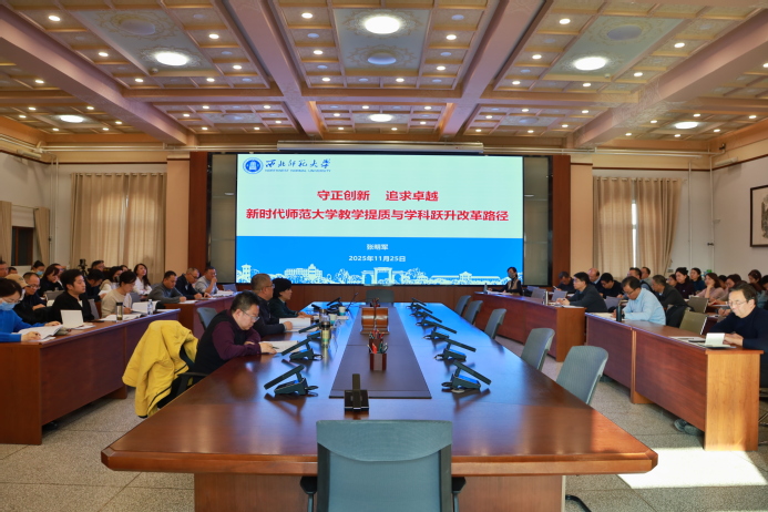 张明军以《守正创新,追求卓越——新时代师范大学教学提质与学科跃升改革路径》为题,围绕人才培养与学科建设,从坚守底线、深耕长线、勇攀高线三个维度系统阐述了学院教学提质和学科跃升的发展路径。他指出,要严守教学纪律规范,打造健康学术生态,严守程序公正原则,筑牢规范安全的办学根基,守护学院行稳致远的“生命线”;要构建持续改进的质量文化,以全程精耕细作厚植高质量人才培养沃土,夯实学院核心竞争力的“质量线”;要打造具有师大特色的教学卓越品牌,构筑高峰凸显的学科生态,树立突破性发展的卓越标杆,勇攀学院突破发展的“卓越线”。