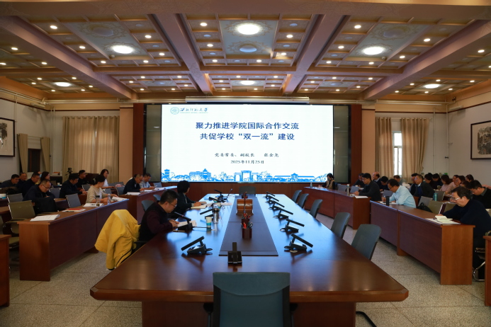 张金尧以《聚力推进学院国际合作交流 共促学校“双一流”建设》为题,聚焦提升二级学院国际合作交流水平,从锚定国际化发展目标、明确重点任务、落实关键举措三个维度,系统阐释了二级学院国际化发展的实施路径。他指出,各学院应依托国际合作平台,在人才培养、师资建设与学术研究的国际化方面持续发力,不断增强服务国家对外开放的能力。同时,要以国际化办学体制机制为支撑,构建全方位、多层次、重实效的开放办学格局,以高水平开放推动高质量发展,塑造对外开放新优势、打造开放办学新高地,为学校整体办学水平和核心竞争力的跃升注入新动力。