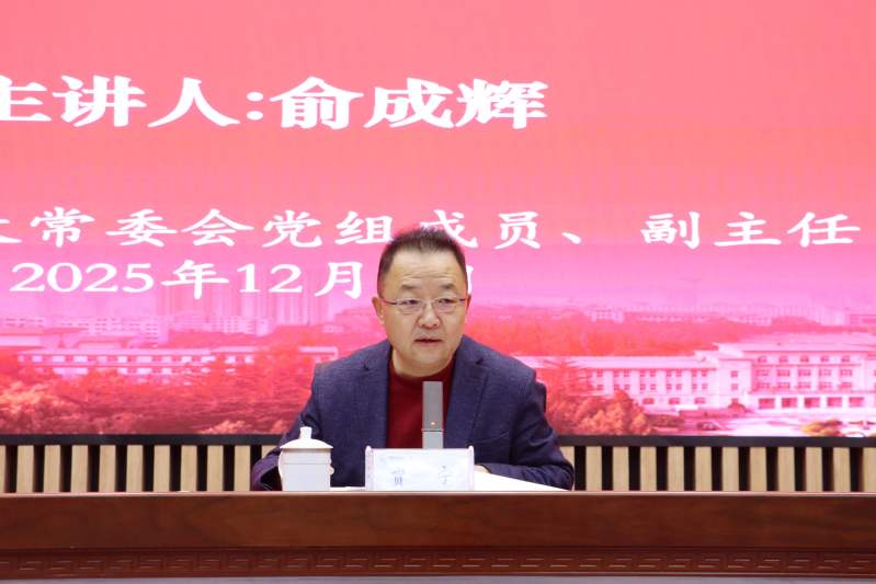 12月1日,甘肃省人大常委会党组成员、副主任俞成辉同志,应邀来西北师大为师生讲思政课,专题宣讲党的二十届四中全会精神。党委书记贾宁主持报告会。校长、党委副书记王占仁,校领导王全进、焦爱胜、张明军、王文昇、阎岩出席报告会。党委常委、党委组织部部长周琳辉及各学院党政主要负责人,机关部门副处级以上干部以及马克思主义学院师生代表参加学习。