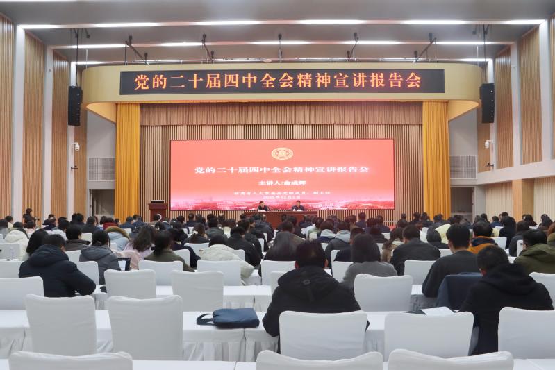 俞成辉紧紧围绕习近平总书记在全会上的重要讲话和全会《建议》,阐释了二十届四中全会的里程碑意义和“十四五”时期我国发展取得的重大成就,解读了“十五五”时期的战略任务、重大举措以及坚持和加强党的全面领导这一根本保证的深刻内涵,并结合甘肃实际,对坚定不移贯彻总体国家安全观,铸牢中华民族共同体意识,推进社会主义民主法治建设甘肃实践,与广大师生进行了交流。
