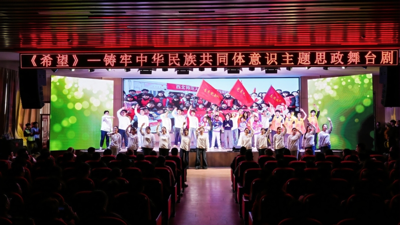 12月7日,西北师大铸牢中华民族共同体意识主题原创思政舞台剧《希望》在积石山县高关初级中学首演。西北师大副校长王文昇,临夏州委常委、积石山县委书记李勇,积石山县委副书记、县长马占彪,县委常委、副县长朱育昌,县委常委、宣传部长蓝婷出席。西北师大相关部门负责人及师生代表,积石山县干部群众、教育系统师生代表及卫健系统代表等千余人共同观看演出。