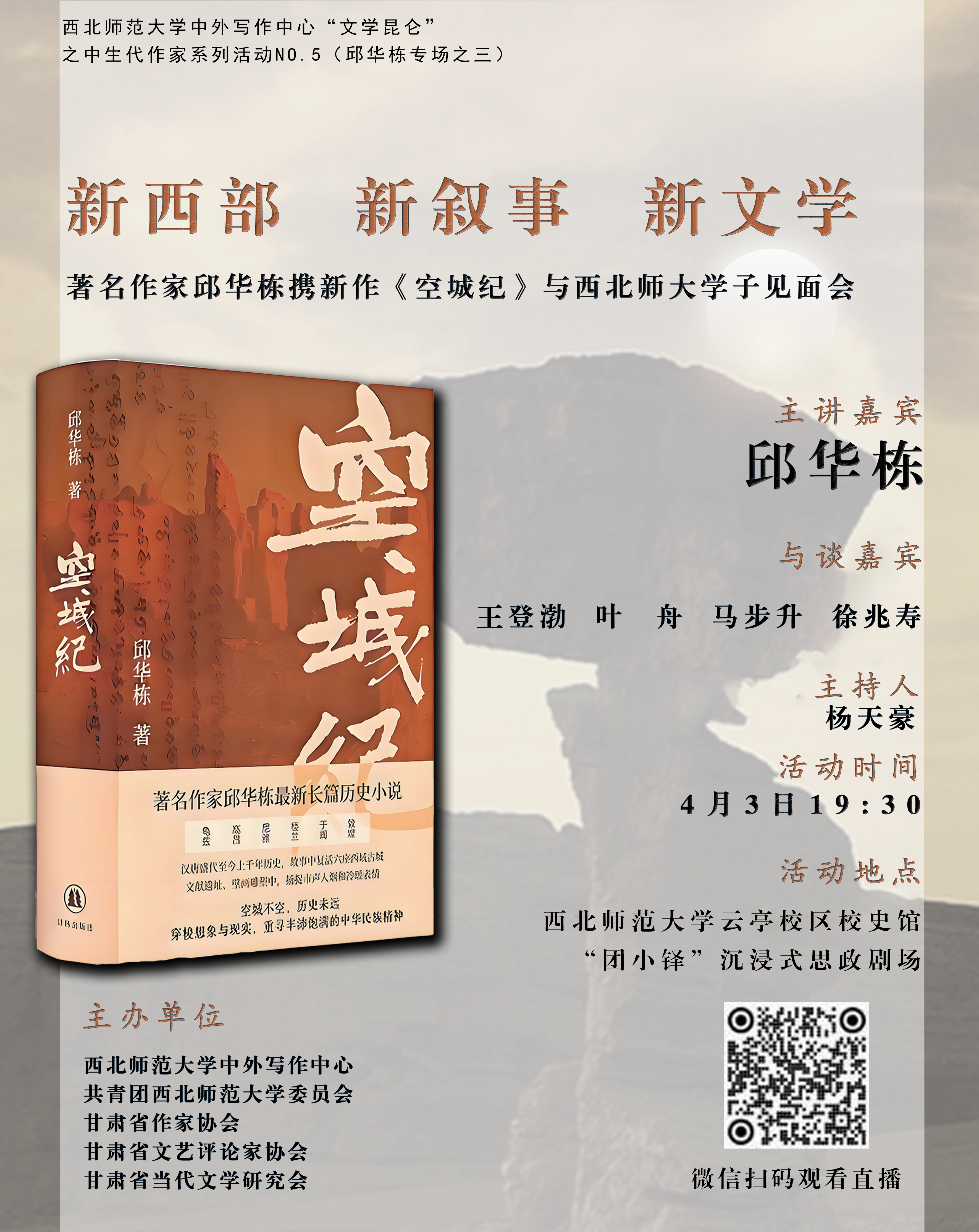 邱华栋携新作《空城纪》与西北师大青年学生见面会时间:2025年4月3日19:30地点:yl6809永利官网校史馆“团小铎”沉浸式思政剧场