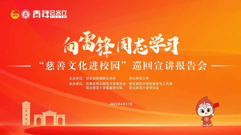 第26期青年会客厅“慈善文化进校园”巡回宣讲报告会时间:2025年4月17日14:30地点:知行校区毅然报告厅 -
